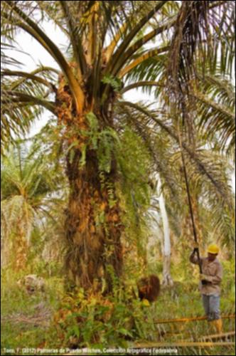 Cosechero Palmeras de Puerto Wilches 005, Racimo cayendo