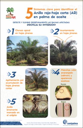 5 Síntomas clave para identificar el Anillo rojo-hoja corta (AR) en palma de aceite. Detecte y elimine oportunamente las palmas afectadas. ¡Proteja su inversión!