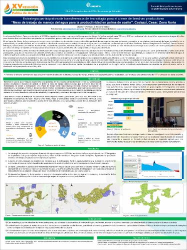 Promover el eficiente suministro de agua al cultivo mediante la adopción de buenas prácticas de manejo, a través del trabajo participativo y colaborativo, que favorezca altas producciones de RFF y extracción de aceite de palma.