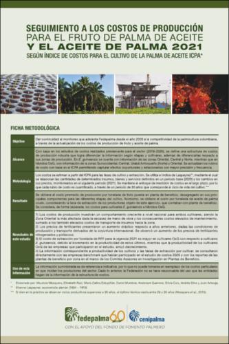 Seguimiento a los costos de producción para el fruto de palma de aceite y el aceite de palma 2021 según índice de costos para el cultivo de la palma de aceite ICPA*
