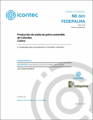 La presente norma de empresa tiene por objeto establecer las buenas prácticas y los requisitos específicos para la producción sostenible de aceite de palma crudo en el cultivo y su articulación con los principios de aceite de palma sostenible de Colombia.