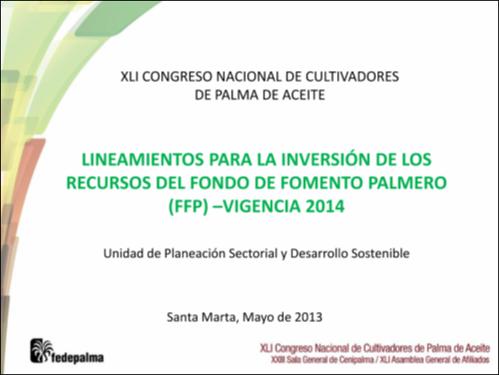Lineamientos para la inversión de los recursos del Fondo de Fomento palmero vigencia 2014